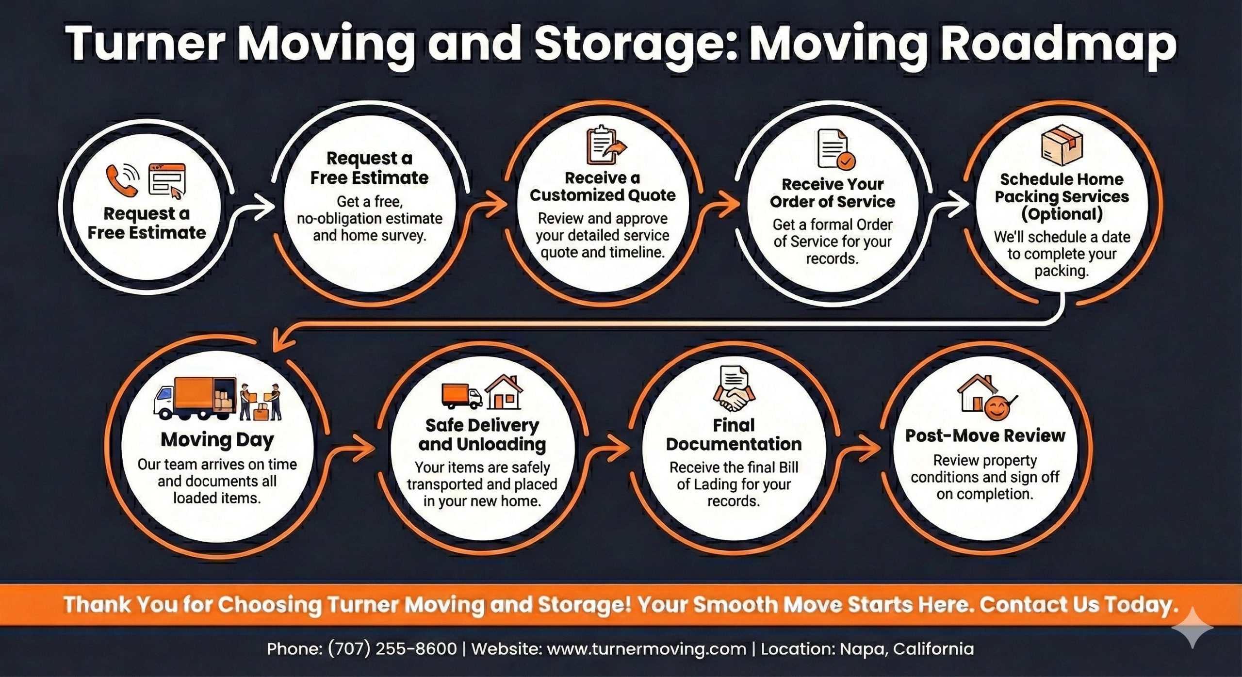 We focus on providing quality services and always strive to exceed expectations. With Turner Moving & Storage, you’re not just a customer, you’re a part of our family. Request a moving quote with absolutely no hidden costs by filling out our online form or calling us at (707) 255-8600 for more info.